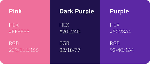Pzaz pink and primary purple serve as our signature